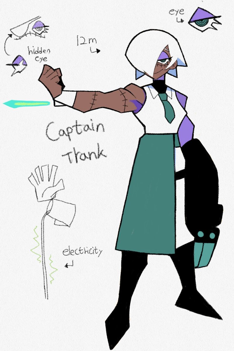 My new oc Captain Trank! She is the sister of Captain Combat and likes to fight and destroy, so she hides a lot of weapons in her clothespic.twitter.com/3CxJakXCig