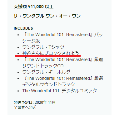なおリマスター版『The Wonderful 101』のクラウドファンディングでは、一部支援者に「神谷英樹さんにブロックされる権利」が与えられる模様 https://news.denfaminicogamer.jp/news/200204a pic.twitter.com/ZjPxSImIv9