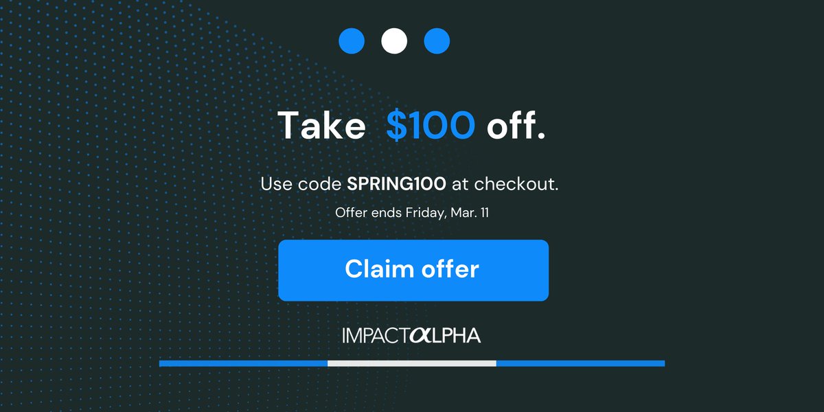 We spot the impact investing trends, highlight important deals and pore through comprehensive white papers so you don't have to. Because time is money. Enter code SPRING100 for a special deal. https://impactalpha.com/subscribe/ pic.twitter.com/oghhOvgXx3
