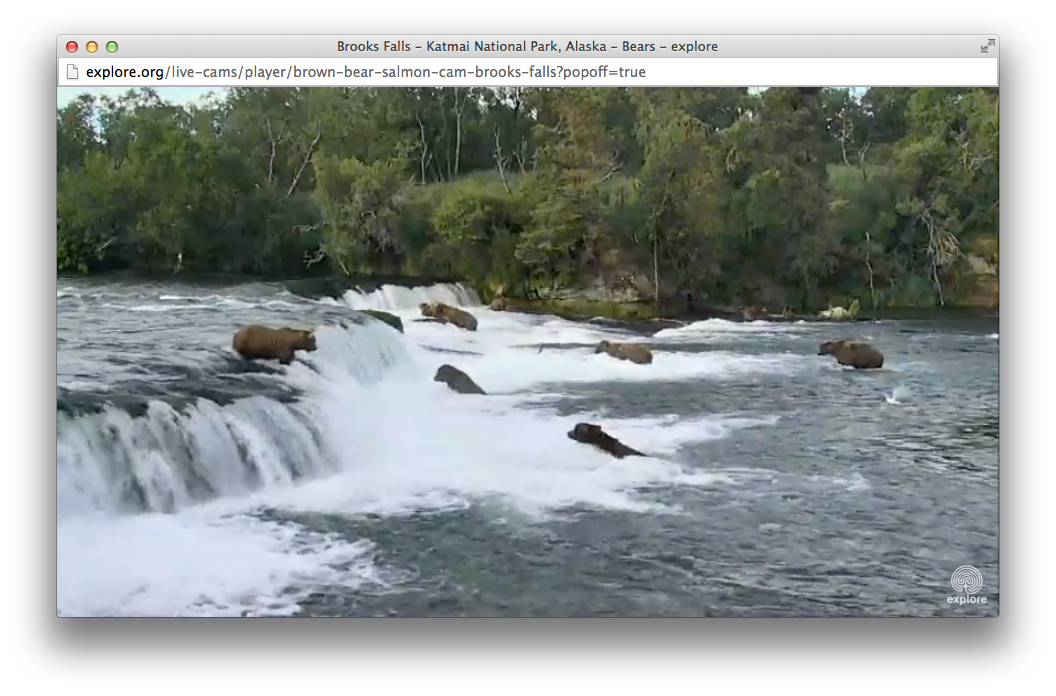 Current status: live bearcam http://explore.org/bears