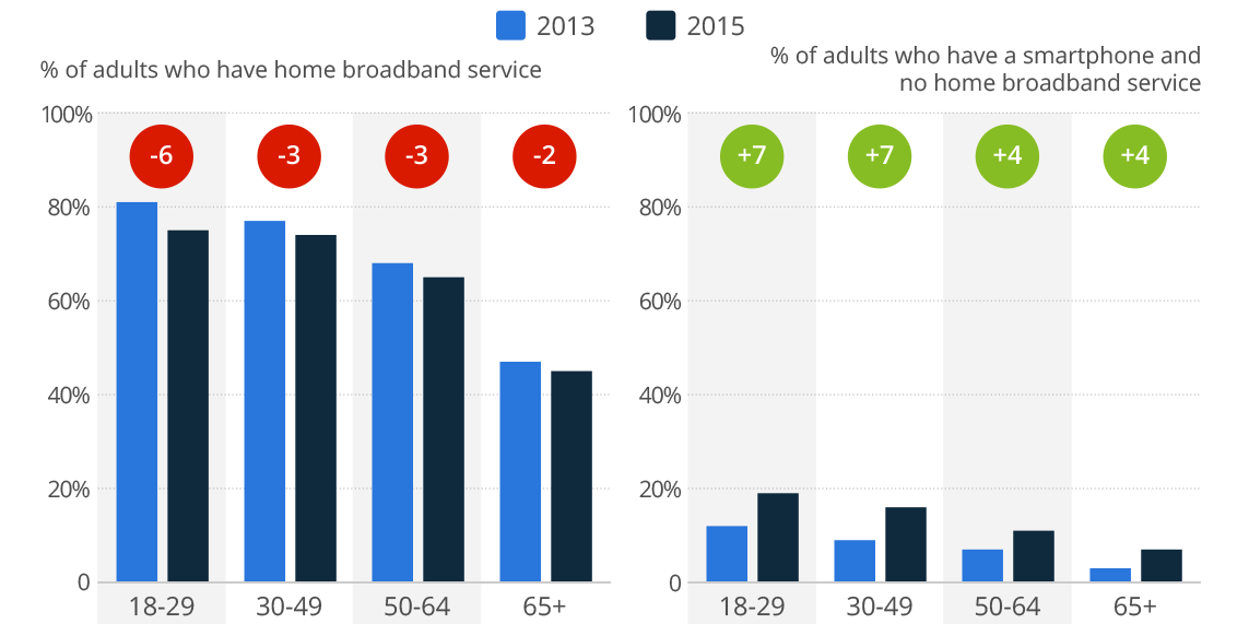 Americans are slowly abandoning broadband just like they did with landlines http://buff.ly/1U2QwOG pic.twitter.com/jdpnaMb3n1