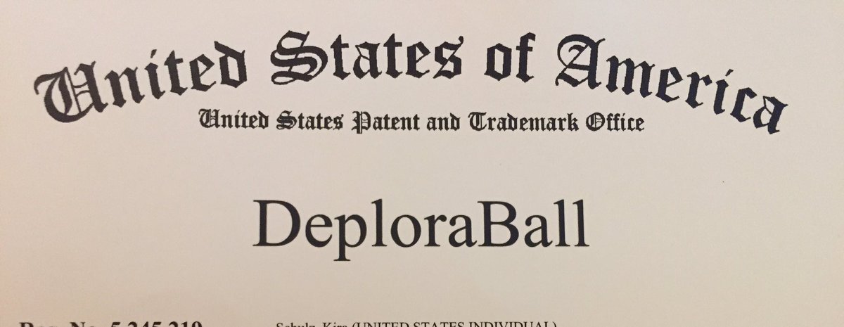Our registered agent just sent us confirmation #DeploraBall is OFFICIALLY REGISTERED with Patents and Trademarkspic.twitter.com/mUynyy7Oj9