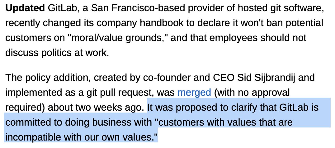 GitLab has two great advantages in culture 1. Do Not "bring your whole self to work" 2. Hire remote to avoid SV worker culturepic.twitter.com/mgciqeElco