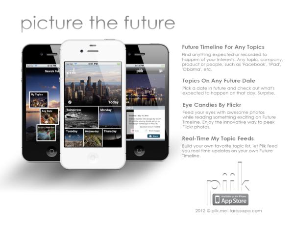 Piik is in iPhone App Store. Be the first one among your friends to tell what's going to happen today, tomorrow, or anytime in future.