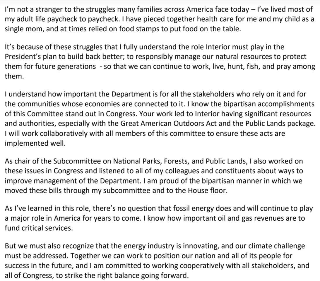 @DebHaalandNM says in prepared remarks for her@Interior confirmation hearing tomorrow. Full remarks here: https://beta.documentcloud.org/documents/20489965-deb-haaland-statement-senr-confirmation-final-22321 …pic.twitter.com/hMB1I8udhk