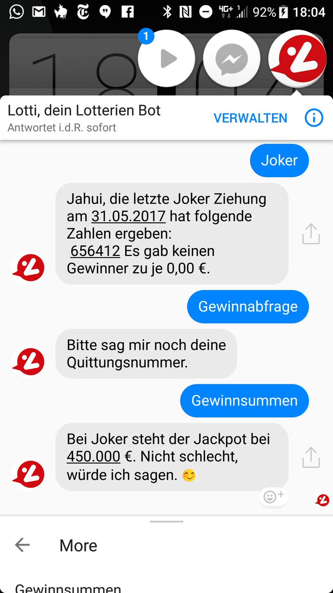Es gibt jetzt einen Lotto-Bot - aktuell noch etwas holprig, aber gute Idee http://updatedigital.at/news/marketing/lotterien-starten-chatbot-und-alexa-skill/6.356.819 … HT