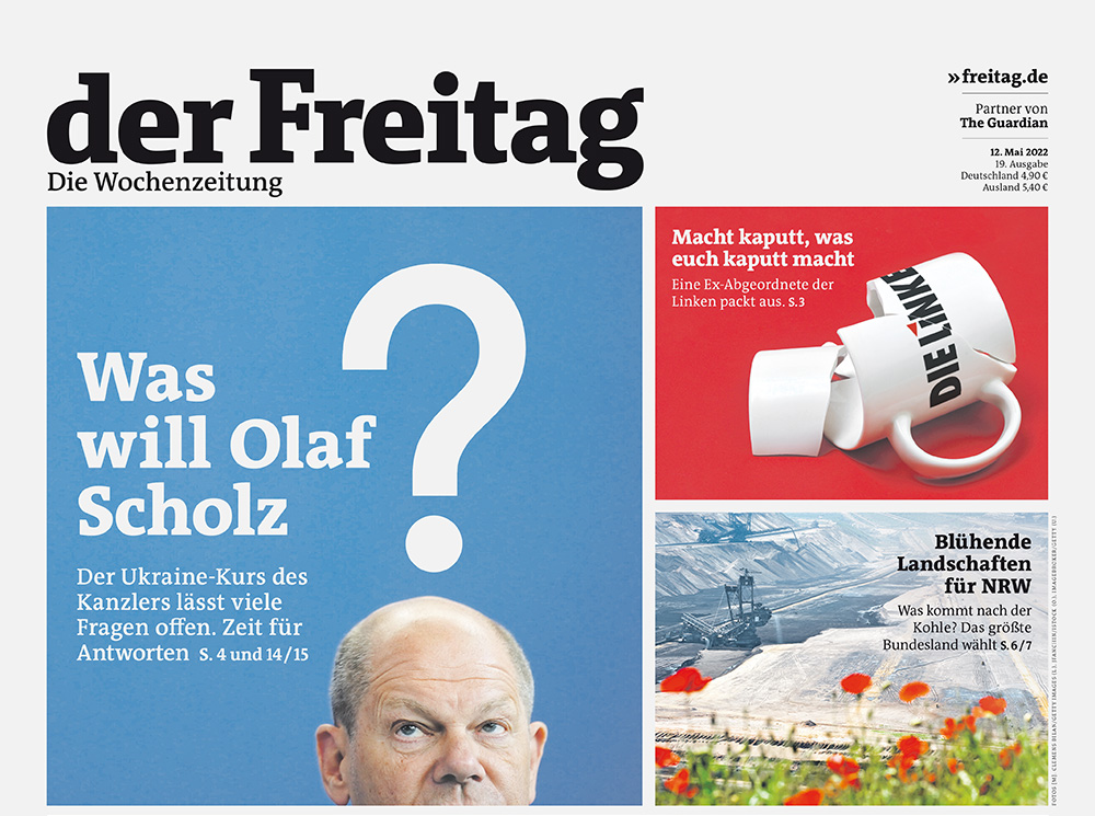 #Scholz? Der neue „Freitag“ mit einem Schwerpunkt zum Schlingerkurs des Kanzlers in Sachen#Ukraine. Ab Donnerstag am Kiosk oder jetzt schon#digital https://www.freitag.de/ausgaben/1922#Krieg#Frieden#Kanzlerpic.twitter.com/KsrWpDIEkC