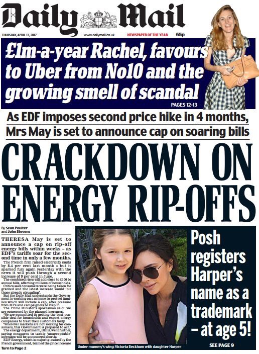 Daily Mail headline no.1: when Ed Miliband wanted to cap energy price rises Daily Mail headline no.2: when Theresa May wants to do the samepic.twitter.com/DpoXZ5Fh3m