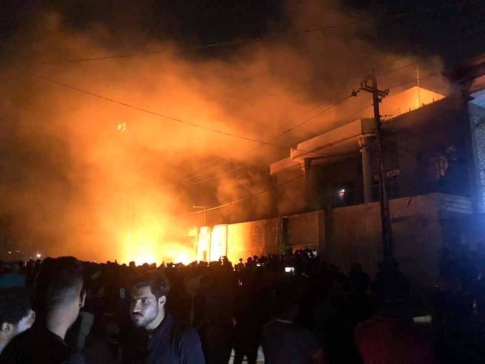 Imágenes del intento de asalto a los cuarteles de la milicia Asa'ib Ahl al-Haq. https://twitter.com/Newsofiraq/status/1188003945865777152/video/1 …
