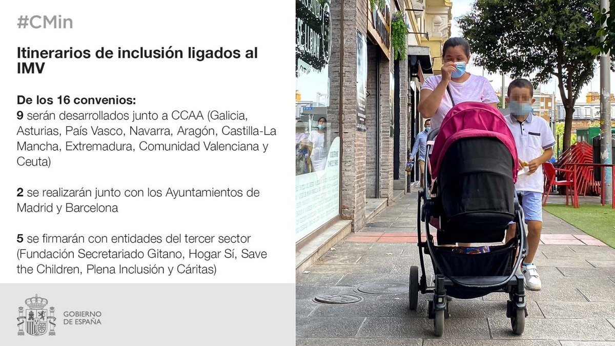 Inicialmente se pondrán en marcha 16 convenios que desarrollarán proyectos piloto en diversas materias y que llegarán a 1 de cada 4 beneficiarios del IMV.pic.twitter.com/uVPfrhtAzZ