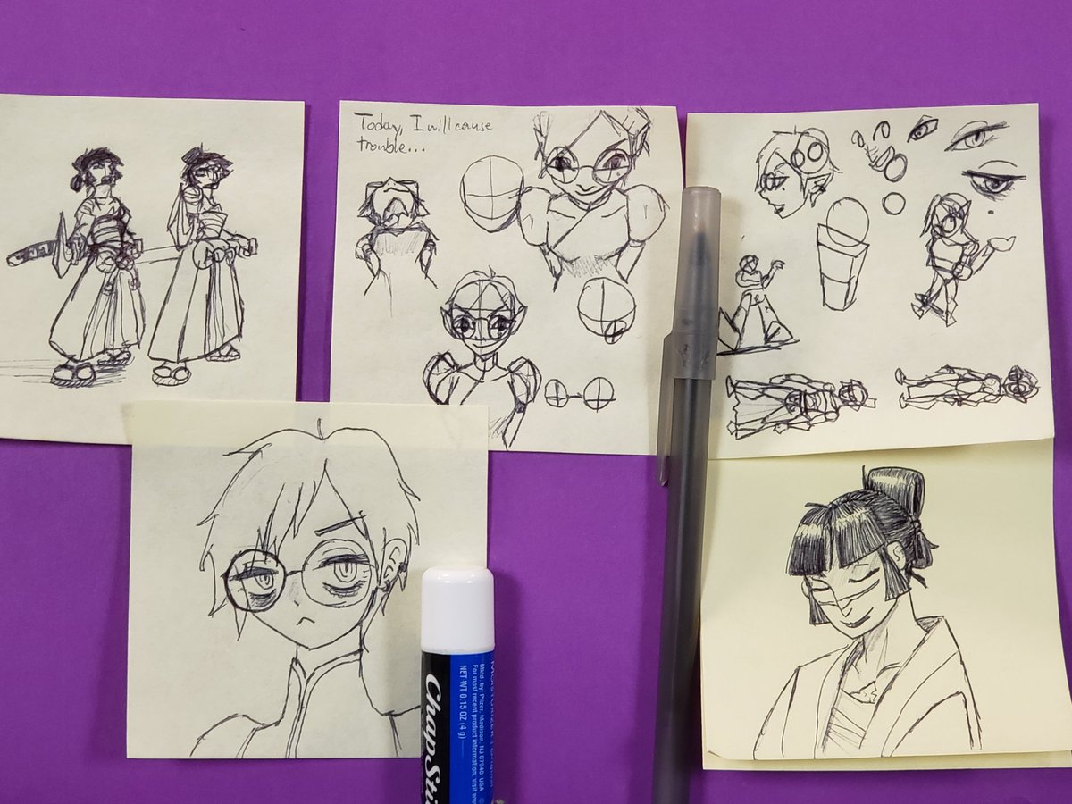 Ehhh, not really Twitter quality but what the hey, some sticky note sketches of the Witch and the Ronin (what -is- "Twitter quality," Fennel?)pic.twitter.com/vMvX8fPclv