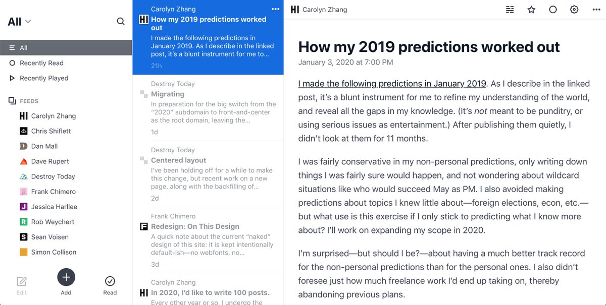 @feedbin account in an attempt to default to reading my friends’ blogs whenever I have downtime. Hoping it will help me slow down, read, and appreciate more.pic.twitter.com/ROP0WNylRX