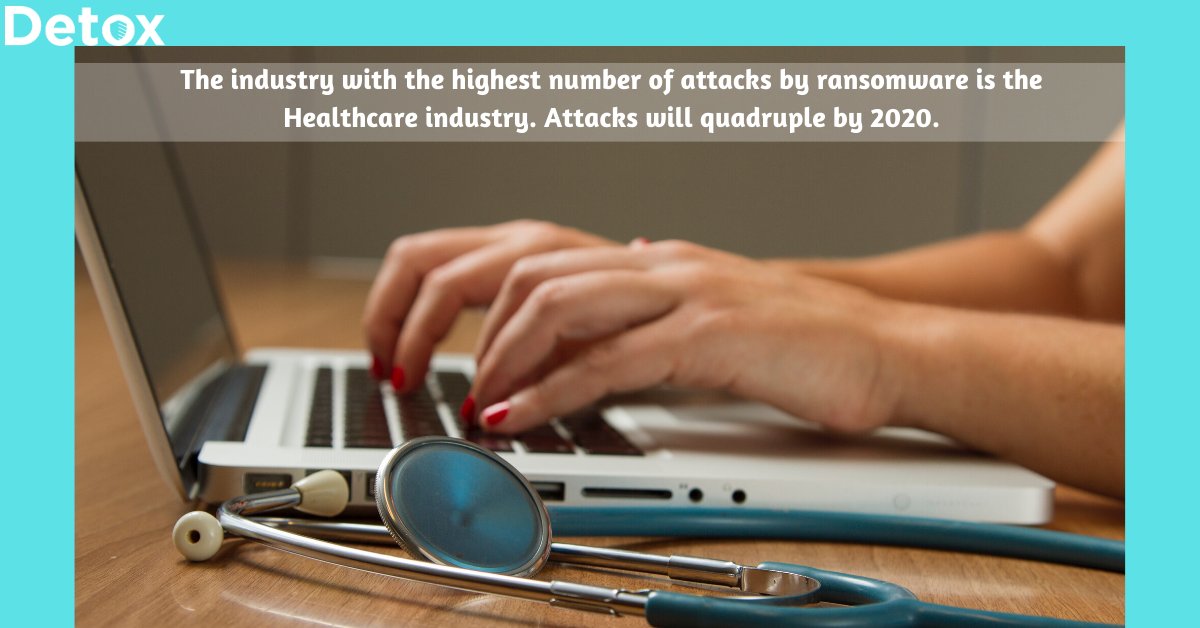#ransomware is the healthcare industry. Attacks will quadruple by 2020.#DetoxTechnologies#penetrationtesting for the#healthcare industry helps you prevent a#PHI breach from malicious#hackers. Visit: https://www.detoxtechnologies.com/ pic.twitter.com/Ly2DK2gTvN