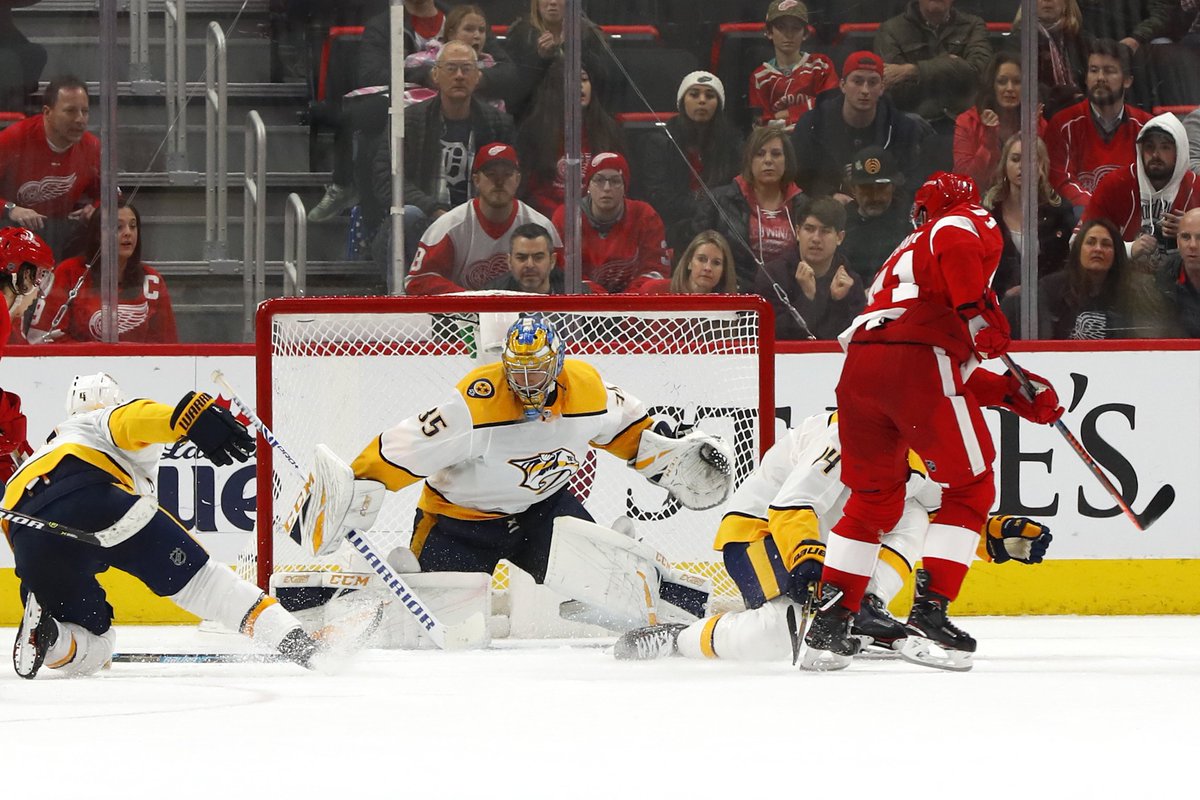 #RedWings trail 1-0 after 1 period,,, they outshot Nashville 14-6....for Wings, the unfortunate part is Pekka Rinne looks locked in tonight for PredsThanks. Twitter will use this info to make your timeline better. UndoUndo -