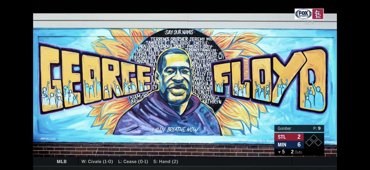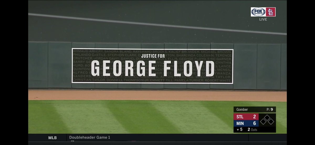 Powerful images. 8:46 pm in MIN. Moment of silence to remember George Floyd during Cardinals-Twins. Screenshots of
