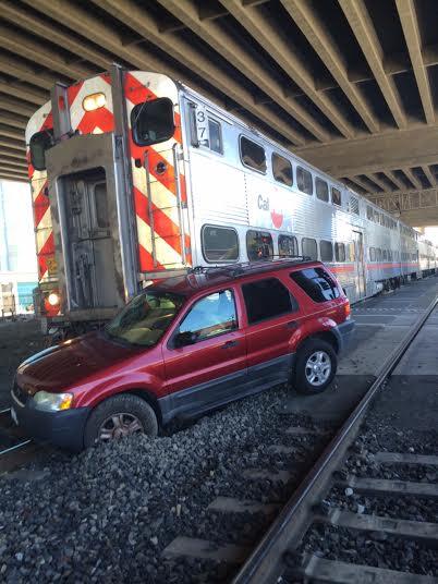 Eventful week in Mission Bay. A train just hit an unoccupied car at 16th and 7th while I was out for a run.