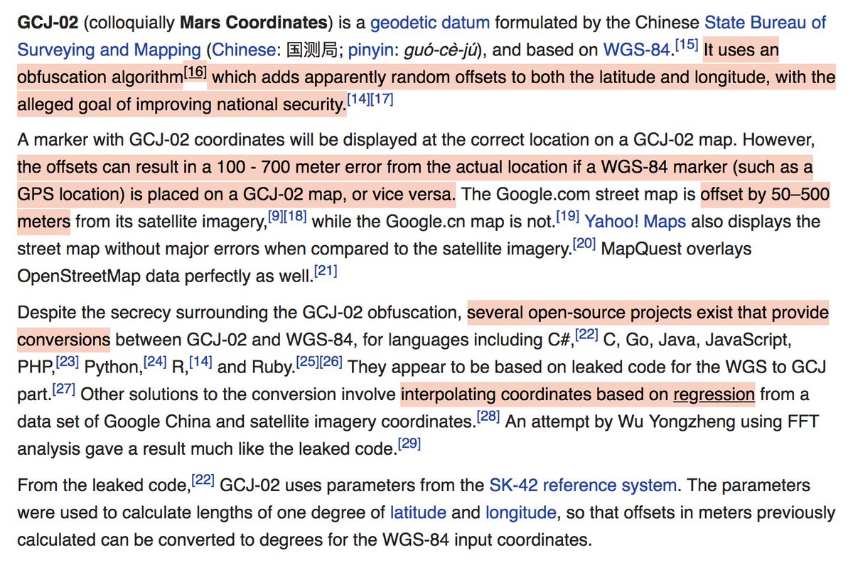 "... It uses an obfuscation algorithm which adds random offsets to both the latitude and longitude, with the alleged goal of improving national security." Something something the map is not the territory https://en.wikipedia.org/wiki/Restrictions_on_geographic_data_in_China …pic.twitter.com/rdyhYMuskK