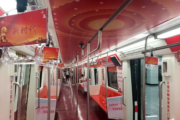 A "New Era" themed subway train is now running in Changchun, China's northeastern rust belt. It's hailed by local gov as a "highly condensed spiritual manual" of XJP Thought and the spirit of the 19th party congress, with a team preaching party propaganda to passengers - in rappic.twitter.com/OtuynLAz8t