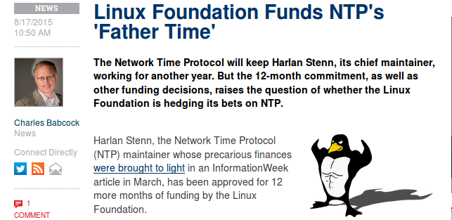 Join me in contributing much needed funding to Linux Foundation NTP project & Father Time => http://buff.ly/1MuWTc0 pic.twitter.com/CeMFzOc19O
