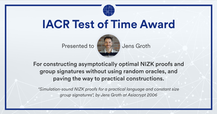 @JensGroth3 on receiving the prestigious Asiacrypt 2021 Test of Time Award!