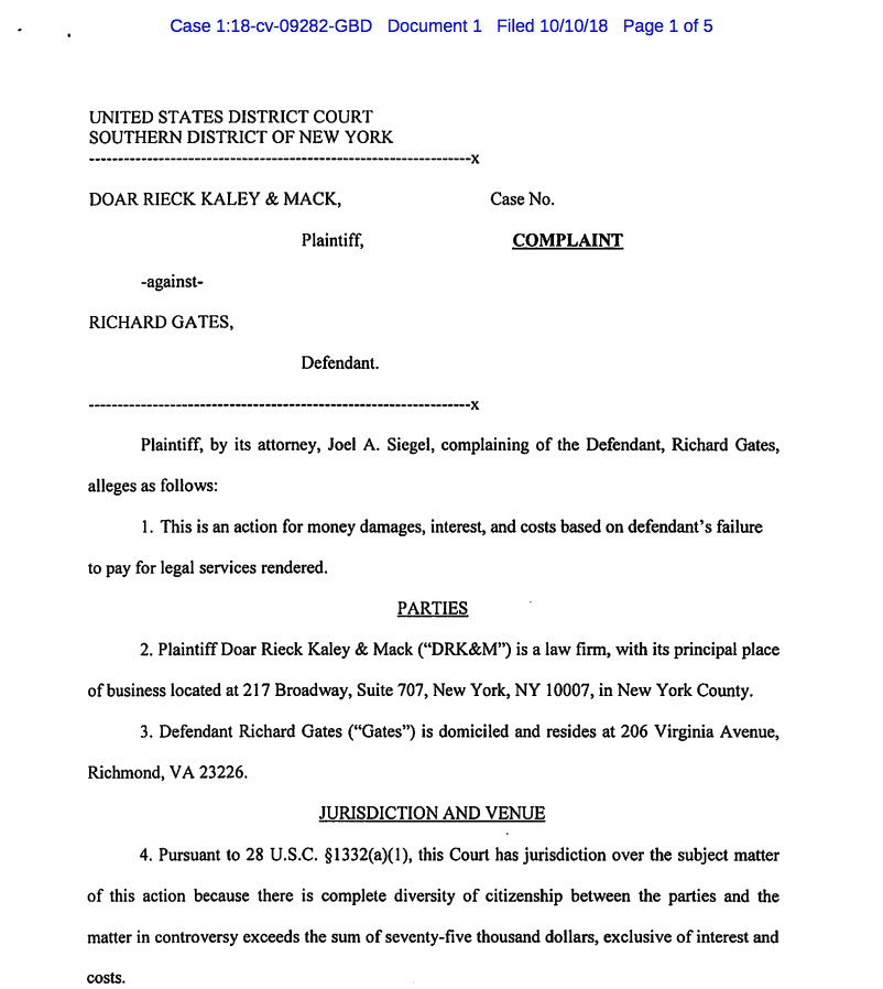 Firm that represented Rick Gates sues him for unpaid legal fees.pic.twitter.com/9evXrpKoA7