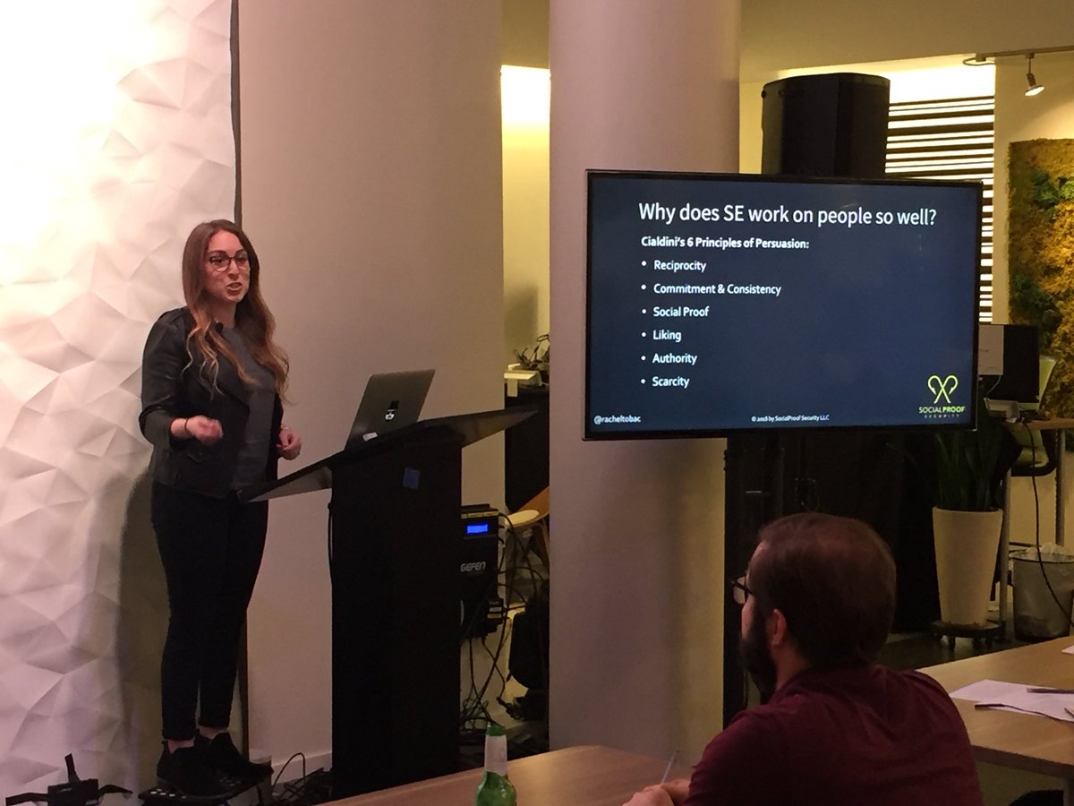 @RachelTobac is talking about#SocialEnginnering techtalk by@duosec@dg717sf She is always awesome