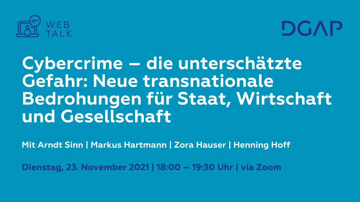#Cybercrime stellt eine zunehmende Bedrohung dar, für#Deutschland,#Europa & die Welt. Diskutieren Sie mit u.a.@ArndtSinn,@ZoraHauser@ex_legi über Dimensionen dieser Kriminalitätsform, Bekämpfungsstrategien auf