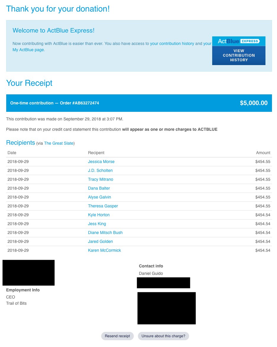 Two anonymous benefactors will match the next $22,600 of donations to the Great Slate(!!). Post your receipts to this thread and I'll tend to the math. To make giving easier, keep the following handy: a cocktail, credit card, and the last week's news.https://secure.actblue.com/donate/great_slate …