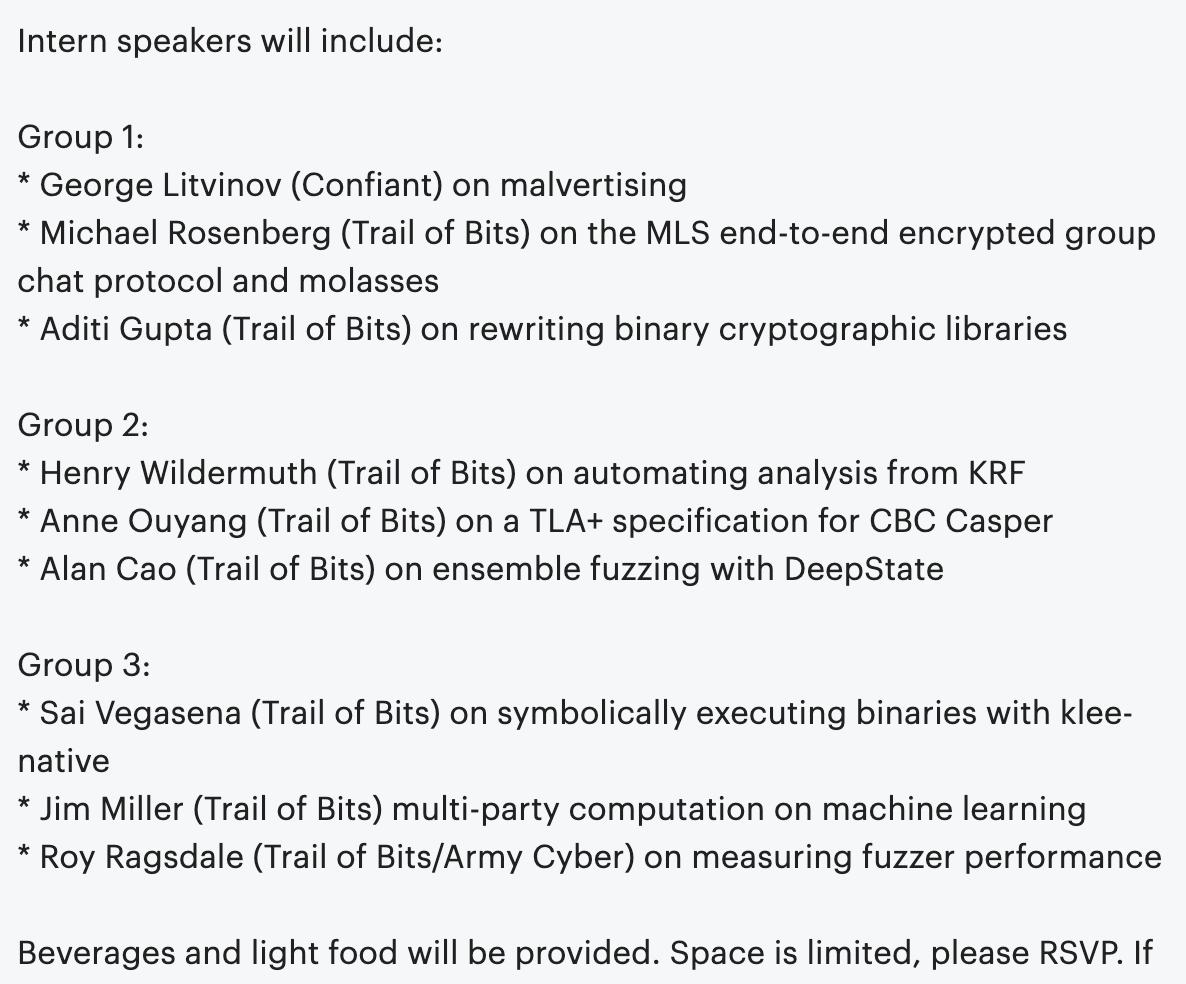 Here's a brief recap of summer internship projects @trailofbits:
