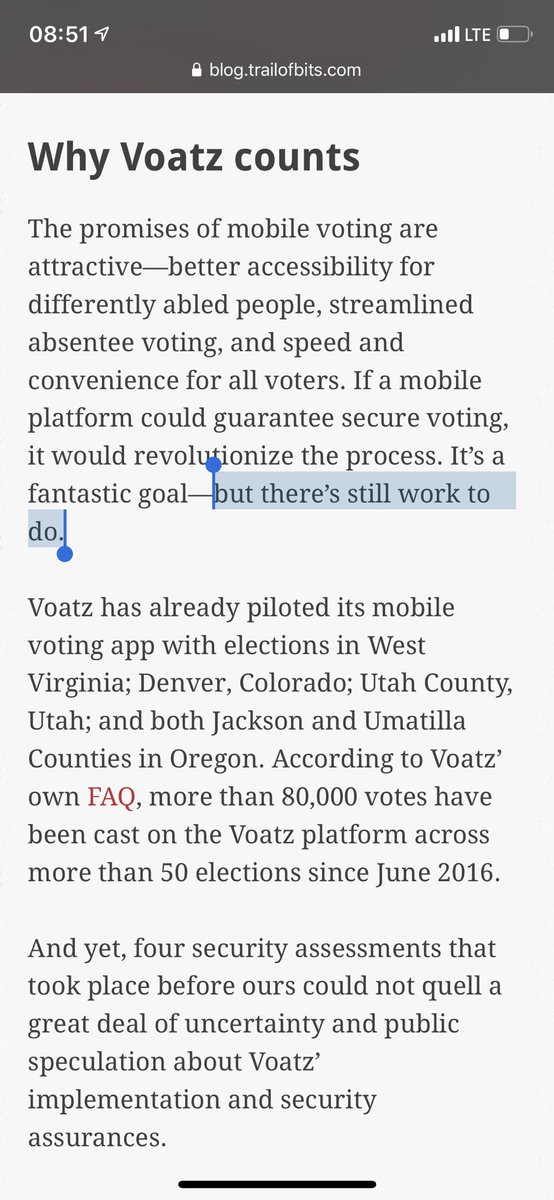 Thanks for the followup & clarification about blockchains. I just think the consensus is that "secure voting" on a "mobile platform" that is usable by most voters is far beyond the state of the art, as documented by E2E-VIV. So "still work to do" is significantly understated.