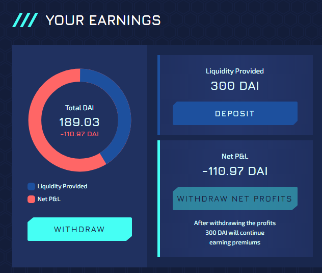 8) The actual profit is derived by looking at the LP capital withdrawn from pool, and subtracting the costs (premium + LP capital initially provided) In the 2nd round, $10,512 + $389 = $10,901 was withdrawn, $58 paid in premiums, and $8,000 initially deposited = $2,843 profit