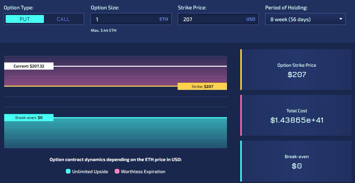 $ETH was at ~$190 Doing so minimized the size of the premium of the option relative to the total price. The 2nd round contracts cost $2633/ea with the premium comprising 0.8% ($22/ea)2 replies 0 retweets 7 likesShow this thread -