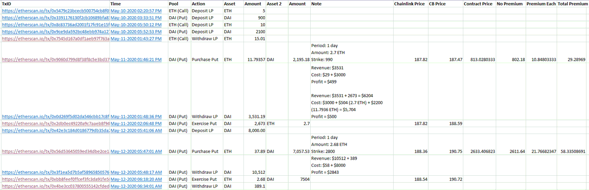 6) The LP mainly profited from the DAI (put) pool. They went through the following process twice: (1) Deposit Liquidity (2) Purchase Put (3) Withdraw Liquidity (4) Exercise Put 1st Round = $500 Profit 2nd Round = $2,843 Profit