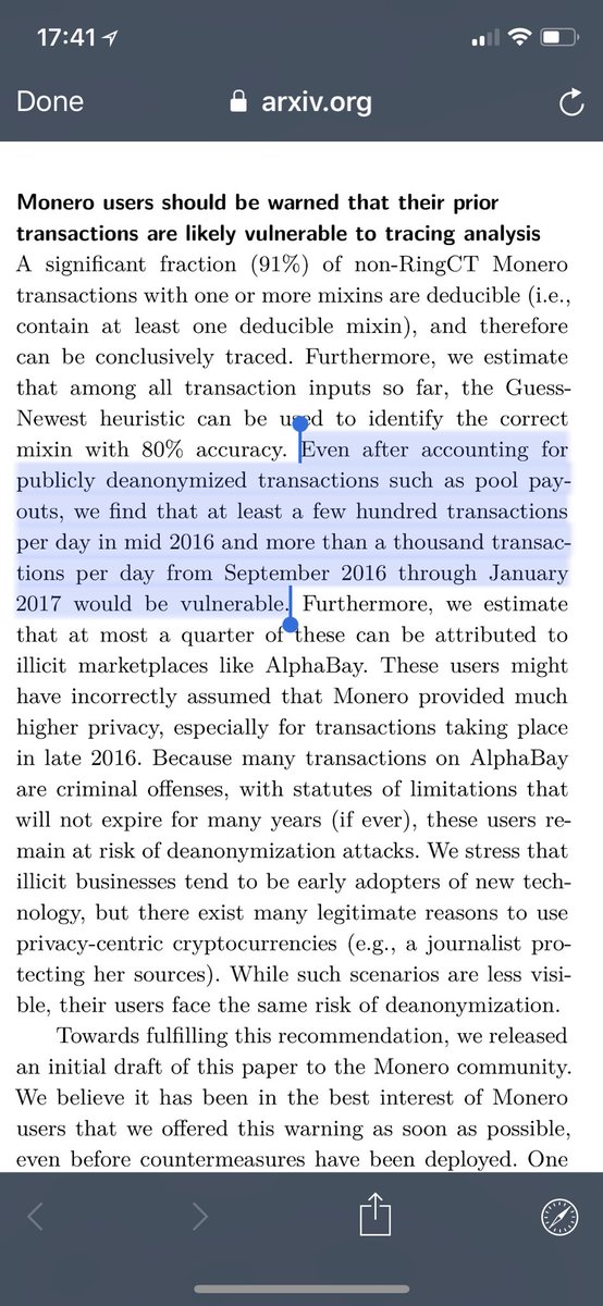 Yes - the paper's analysis couldn't even extend past January 2017, which means this is a solved problem. Your original Tweet is provably a lie: "If you used Monero between July 2016 and September 2017, there's a 91% chance that your transactions can be conclusively traced." wtf
