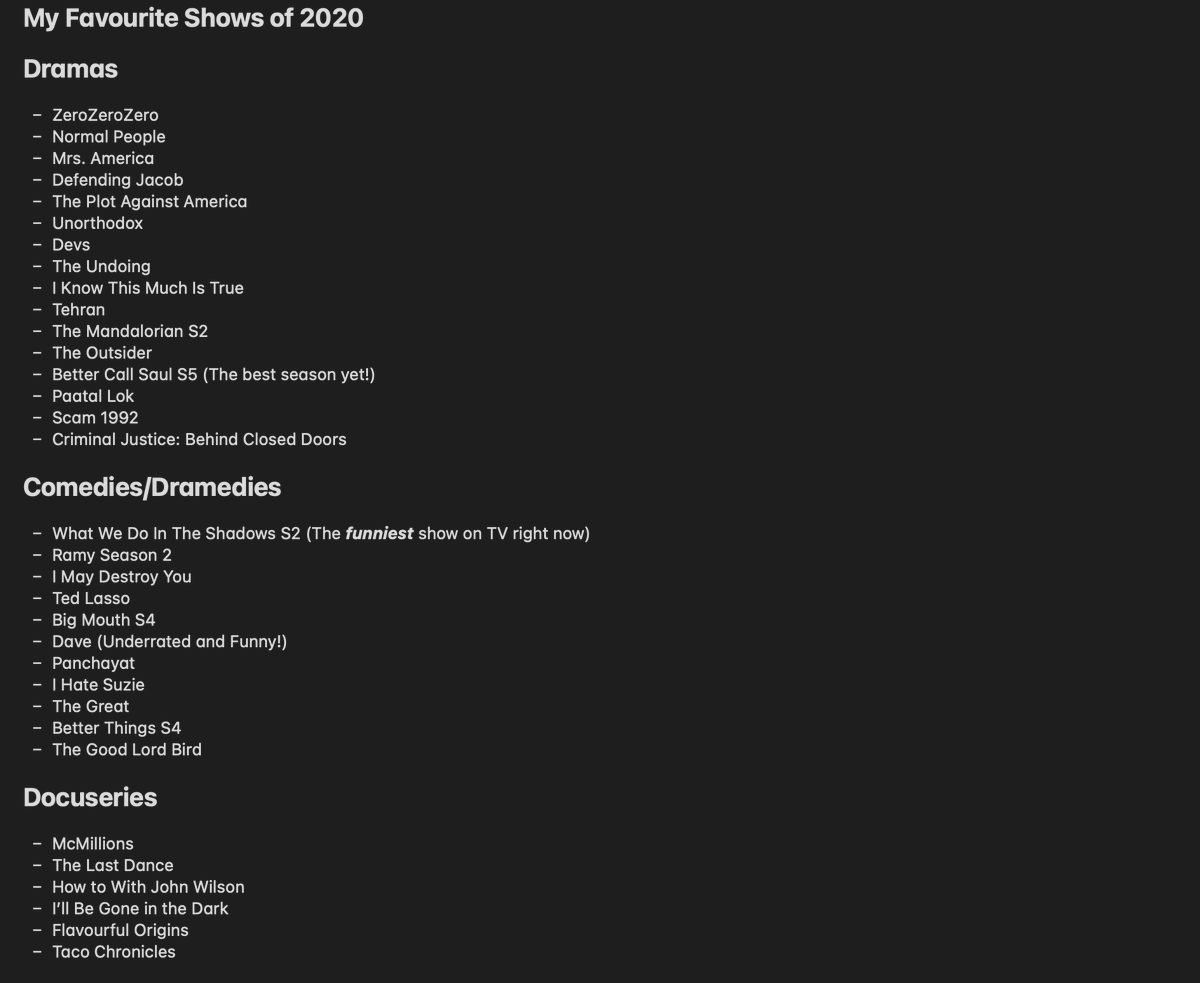 Here's a list of some of my favourite shows from 2020. The list also includes some older shows which had kickass new seasons in 2020. Pretty sure I have missed a few good ones but this is largely what I enjoyed in 2020.pic.twitter.com/TBkfZPI0yr
