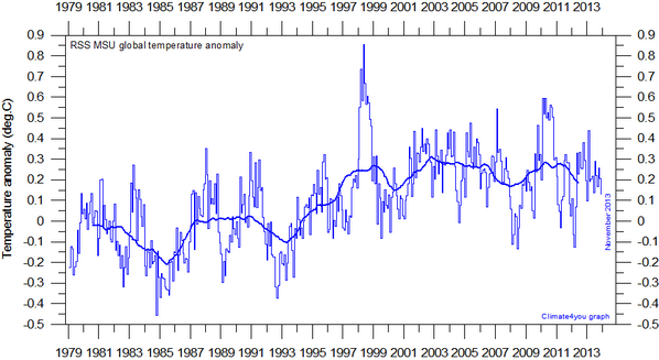 RSS Global surface temperatures for November, 2013, going down and nearing 0.1 C-source: http://www.climate4you.com/images/MSU%20RSS%20GlobalMonthlyTempSince1979%20With37monthRunningAverage.gif …pic.twitter.com/GZv9B4ji7P