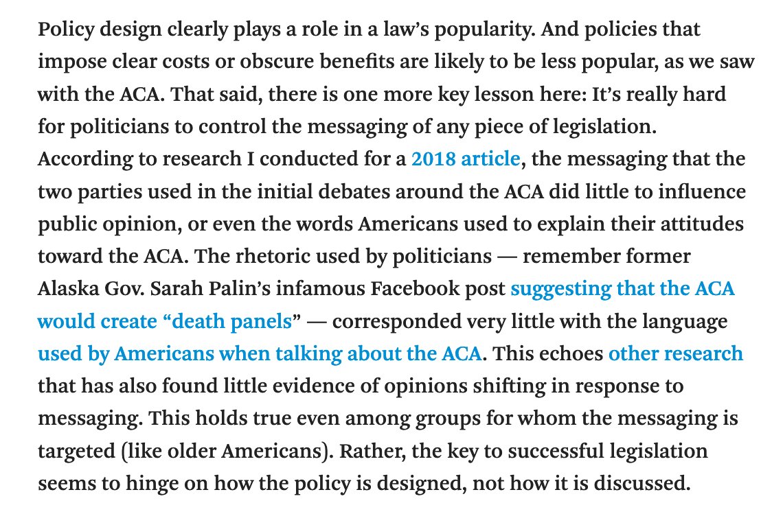 @FiveThirtyEight piece is out. Whether it's on COVID-19 or climate change, Democrats have an ambitious legislative agenda. What can we learn from public opinion on the ACA (aka Obamacare) that might guide Democrats as they try to pass it? 1/https://fivethirtyeight.com/features/the-democrats-have-an-ambitious-agenda-heres-what-they-should-learn-from-obamacare/ …Show this threadThanks. Twitter will use this to make your timeline better. UndoUndo -