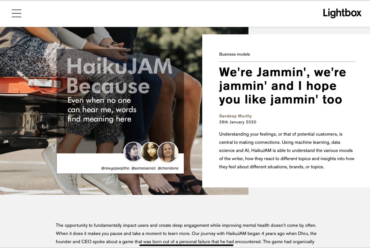 @sandeepm1 from Lightbox Ventures, on why they decided to back us & what makes@HaikuJAM special. Crazy to think how the journey with@lbvc started with a cold email sent from