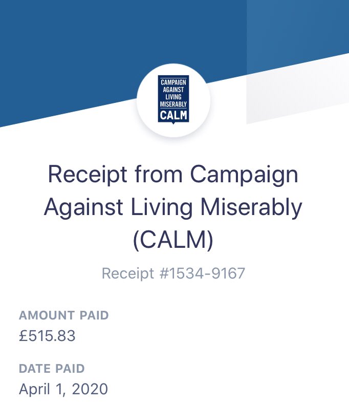 Thank you to everybody who has supported us during these uncertain times. Organisations like @theCALMzone are essential!pic.twitter.com/NdYhskVMKM