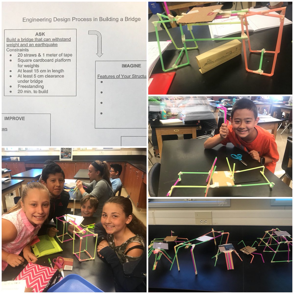 Putting the #engineering #designprocess to work in sixth grade science. These @MtDiabloUSD Ss are having fun innovating and improving strong bridge designs.