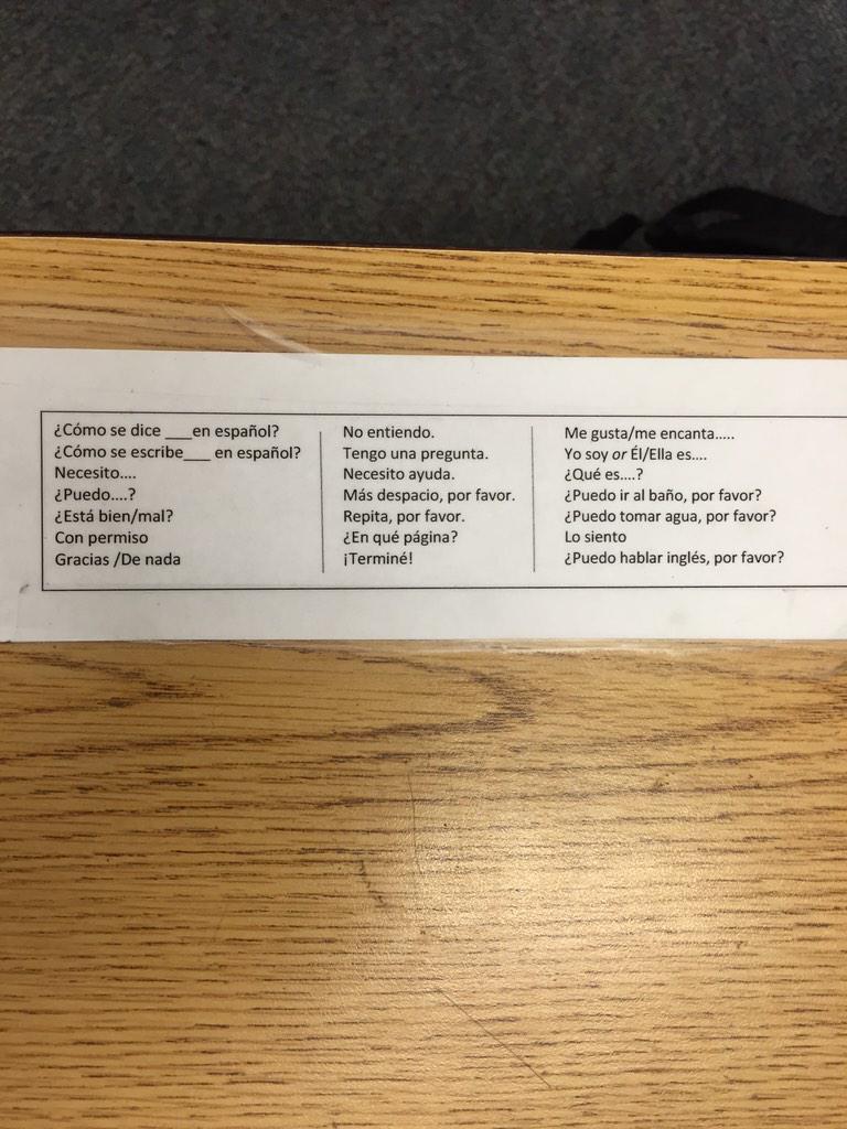 Spanish students use sentence starters on their desks as reminders for Spanish conversations #dvproud #analogpic.twitter.com/VBmICLFotd