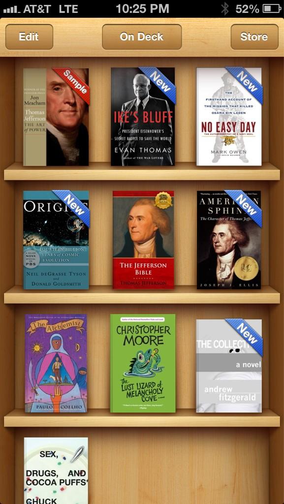 @travisboucek@dickc iPad. The books in common are more my history geek side, though you'll spot on the shelf my science and fiction love 2.