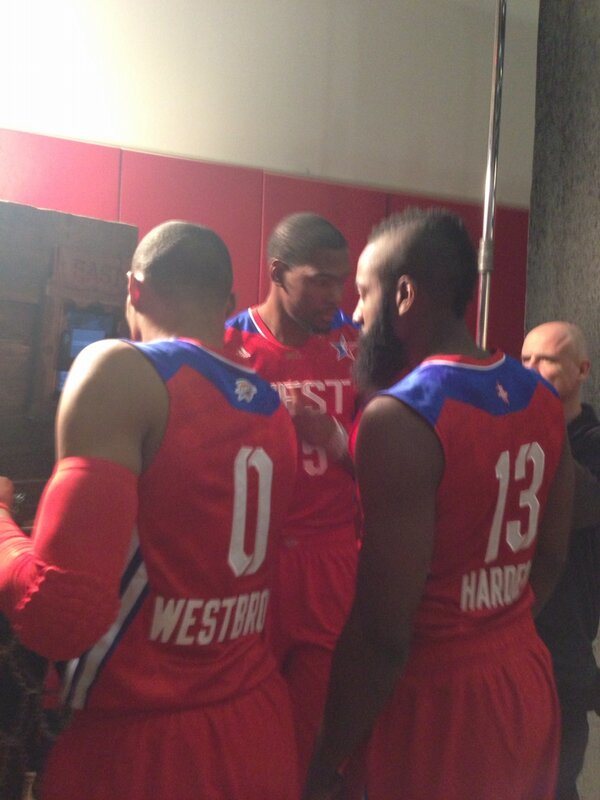 The West all-stars at the NBA Twitter mirror before the game in Houstonpic.twitter.com/ZWAQgpyX