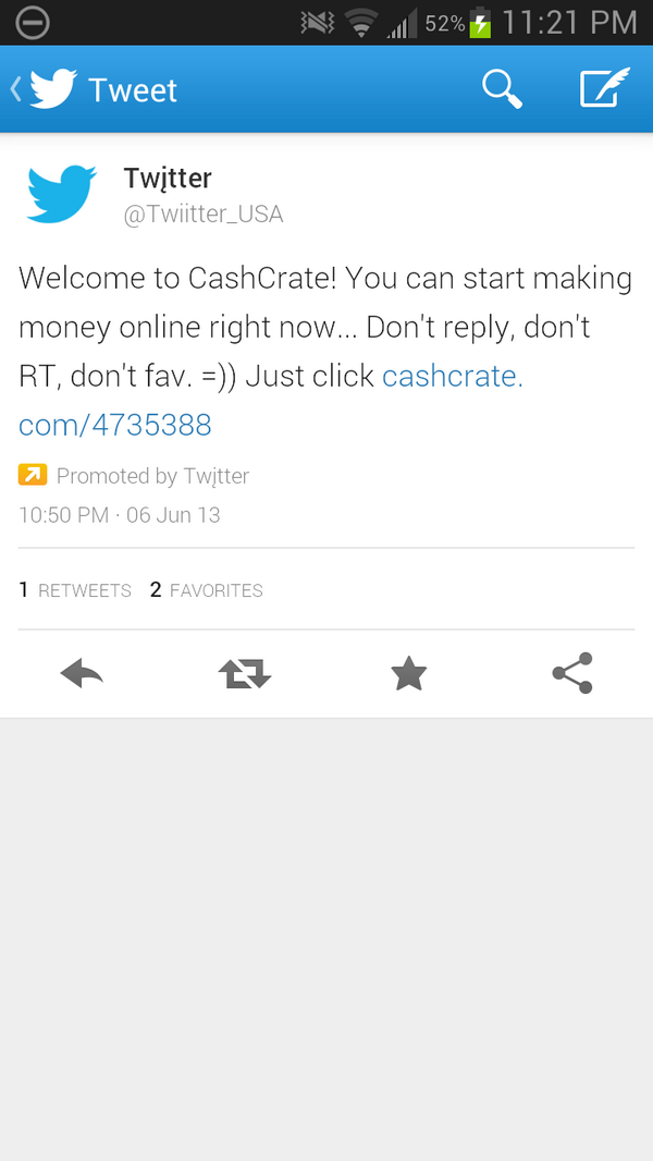 Weird spam. Note the "i" in Twitter. You would think they would prevent ads like this. cc: @dickcpic.twitter.com/FKaCOOCiZP