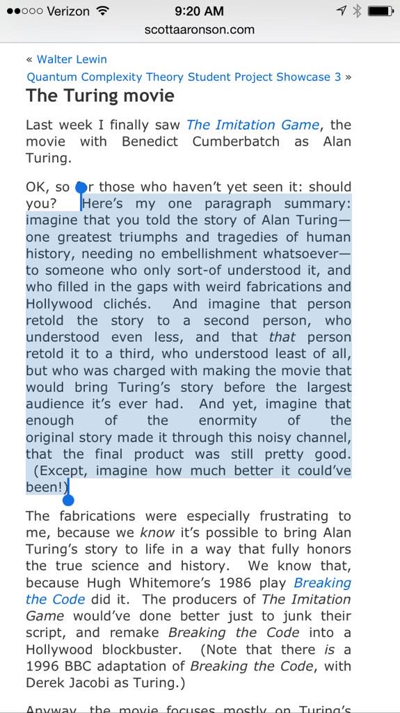 @marius not a bad way to put it. I found it very disappointing yet still enjoyable. This Caryl piece went to town:http://www.nybooks.com/blogs/nyrblog/2014/dec/19/poor-imitation-alan-turing/ … -