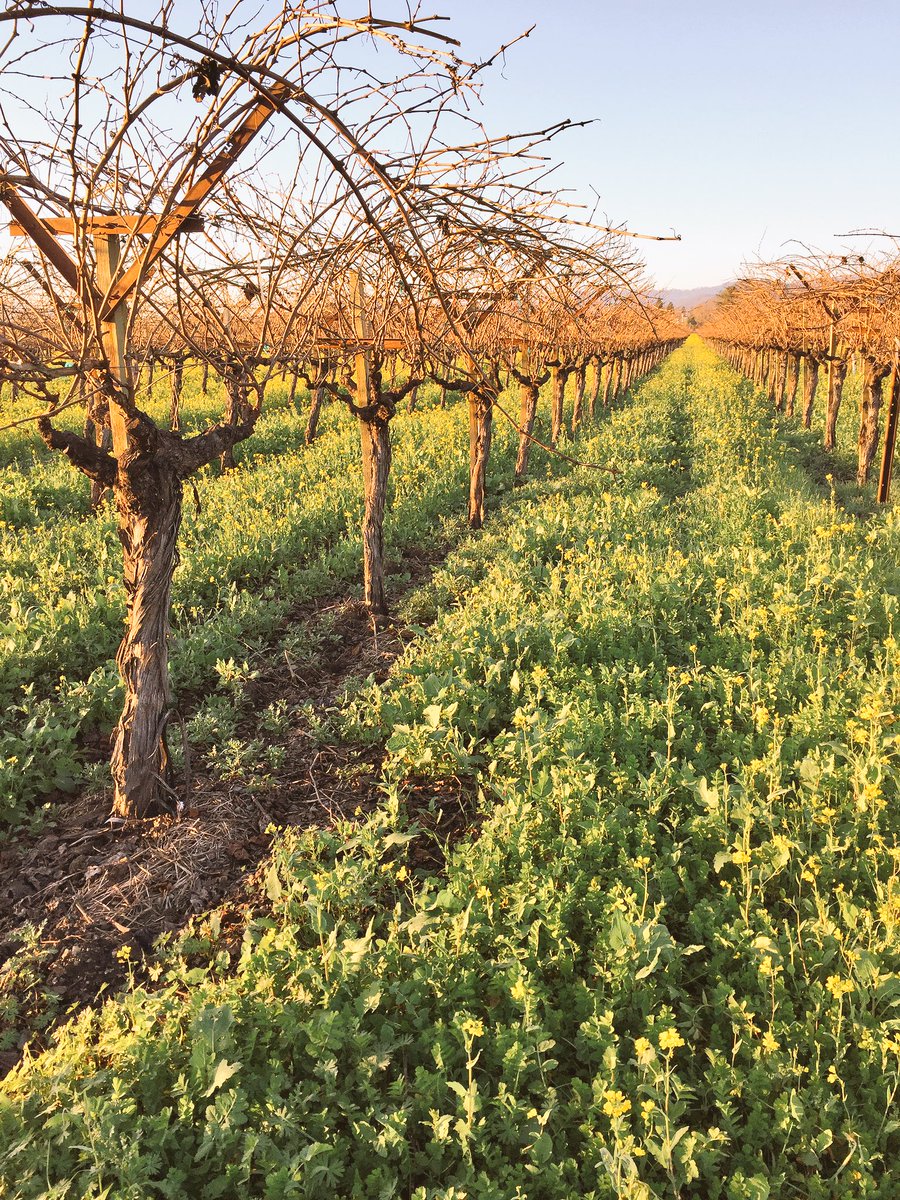 Mustard greens and mustard flowers as far as the eye can see in the rows between the vines.pic.twitter.com/bknT2c4Bxv