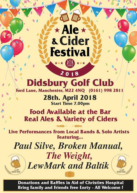 #Didsbury Diary -#Ale &#Cider Festival@didsburygc on 28th April. Free entry. Fundraising fro@TheChristie. Full details on flyer.pic.twitter.com/SKSspxWEwE