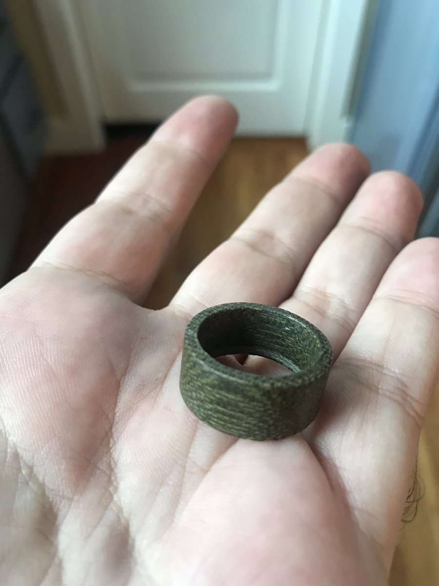 Figured out how to get the boring bar into position and was able to make a ring out of micarta. Any ideas on how to sand the inside of this?pic.twitter.com/V58RUphDAd