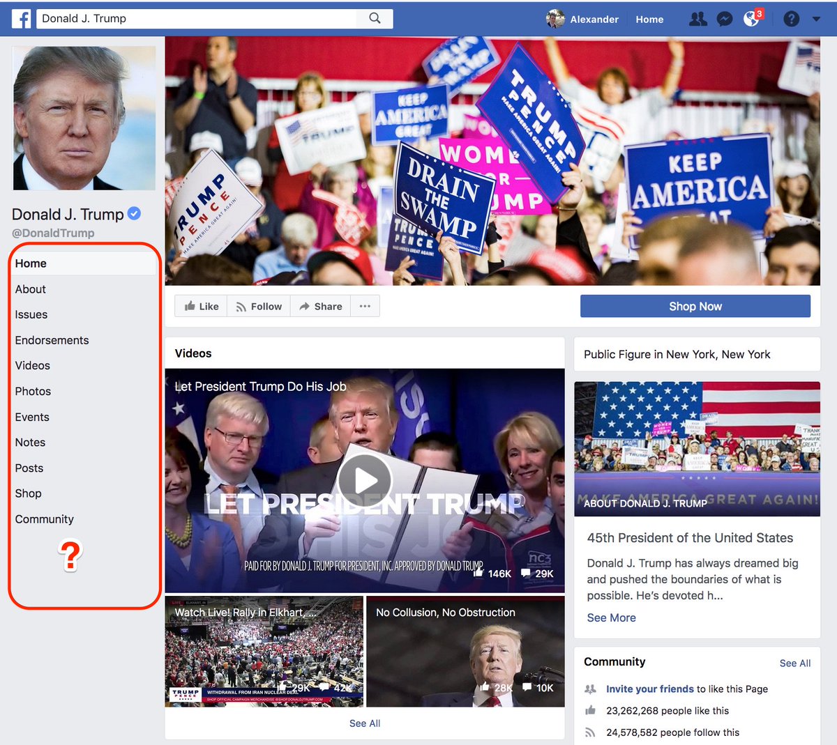 @realDonaldTrump's campaign account on@Facebook – you arrive at the Page behind the ads. Unfortunately, there's no tab for political ads or link to this archive. It's hard to see how folks will find them, without it.pic.twitter.com/EASlccVAhF
