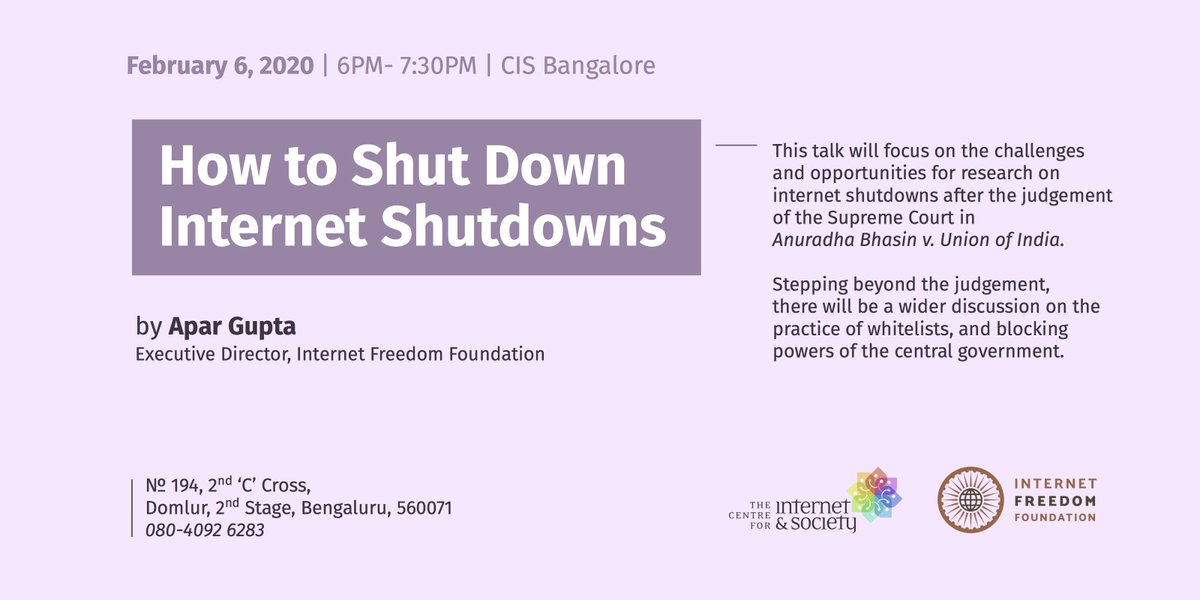 #InternetShutdowns. If you are in Bangalore, don't miss this! RSVP https://cis-india.org/internet-governance/events/how-to-shutdown-internet-shutdowns …https://twitter.com/cis_india/status/1224278858054230016 …